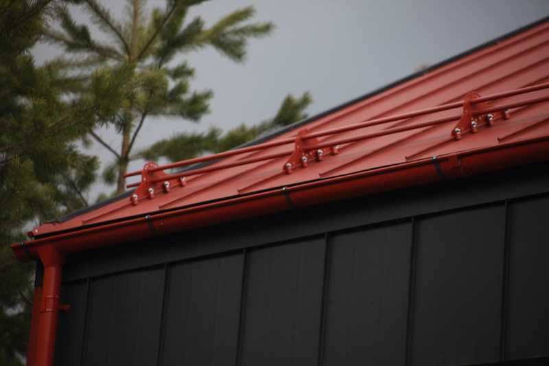 Картины крепятся к обрешетке с помощью кляммеров. Кляммеры закатываются в фальцы, благодаря чему сквозные отверстия на поверхности фальцевой кровли отсутствуют.