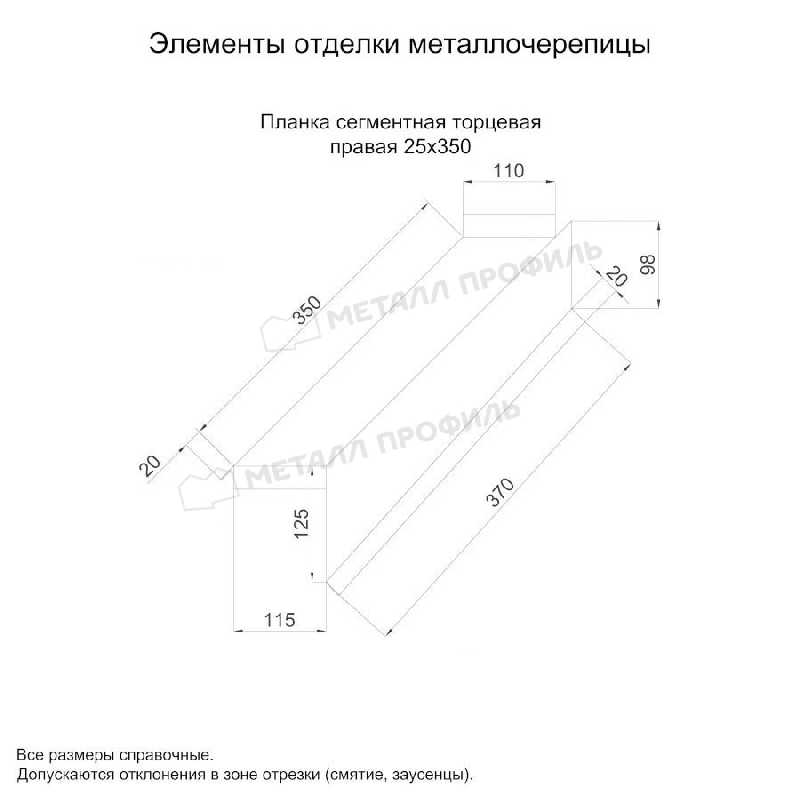 Планка сегментная торцевая правая 350 мм (PURMAN-20-9005-0.5)