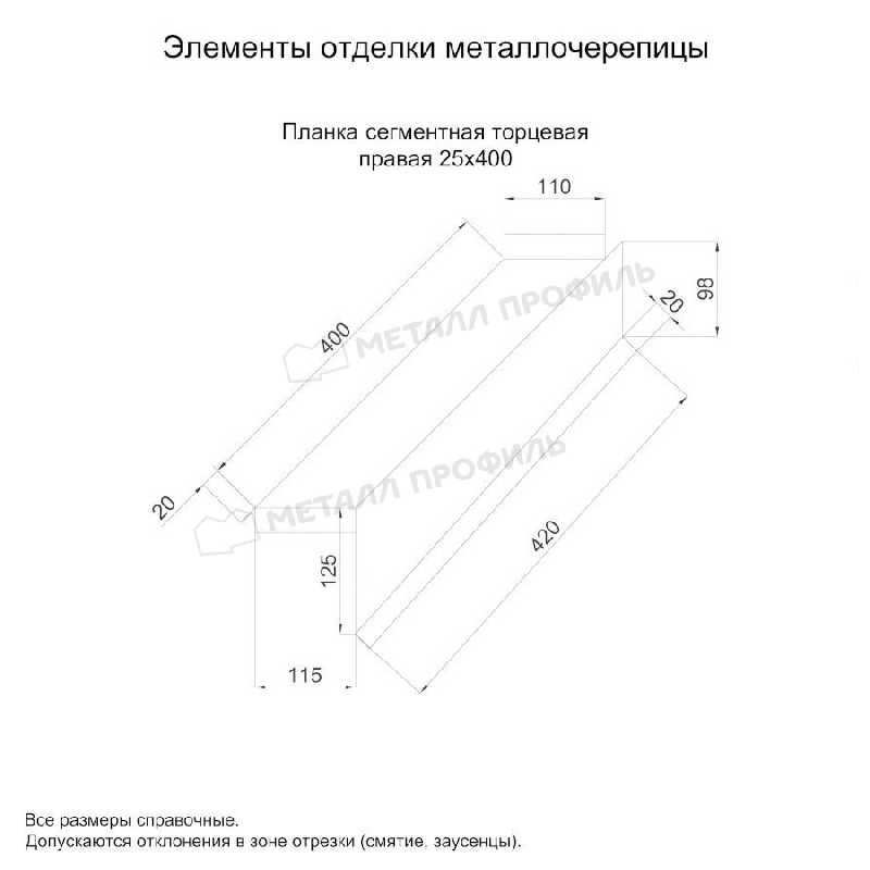 Планка сегментная торцевая правая 400 мм (PURETAN-20-8017-0.5)