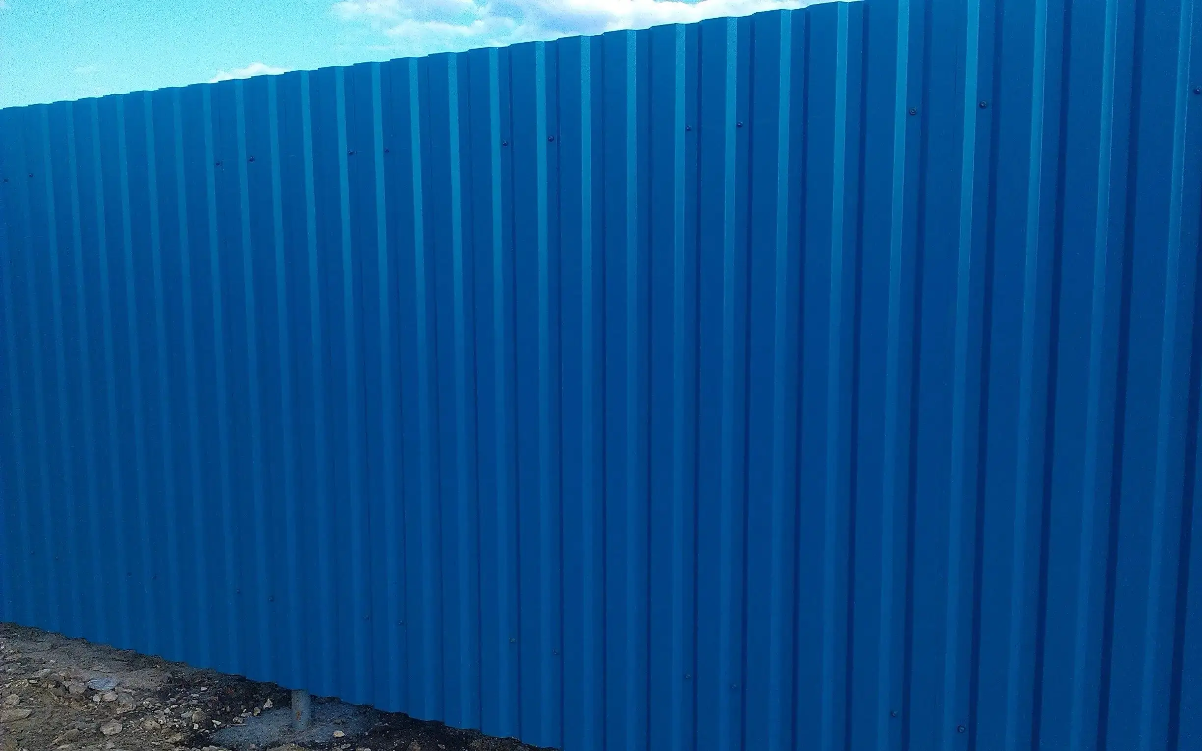 Профлист Металл Профиль МП-20 0,45 Полиэстер RAL 5005 Синий насыщенный применяется для создания кровельных и стеновых покрытий, а также для изготовления заборов, ограждений и других конструкций.