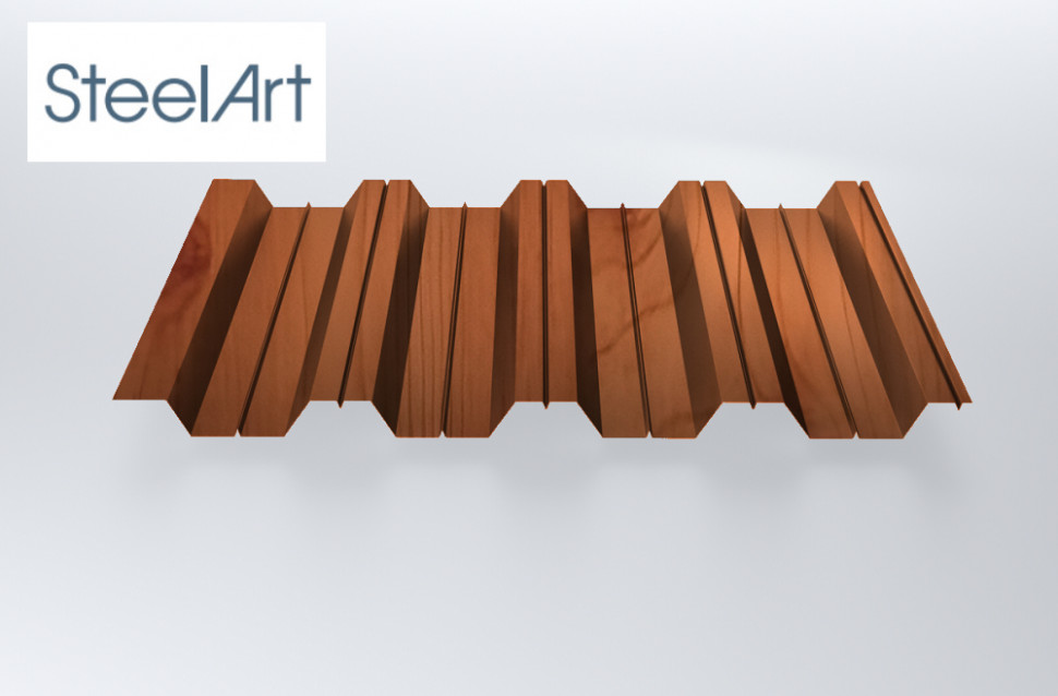 Профнастил SteelX НС44 SteelArt 0,4 Золотой дуб - это качественный материал для кровли и обшивки зданий. Изготовленный из оцинкованной стали, он обладает высокой прочностью и долговечностью.