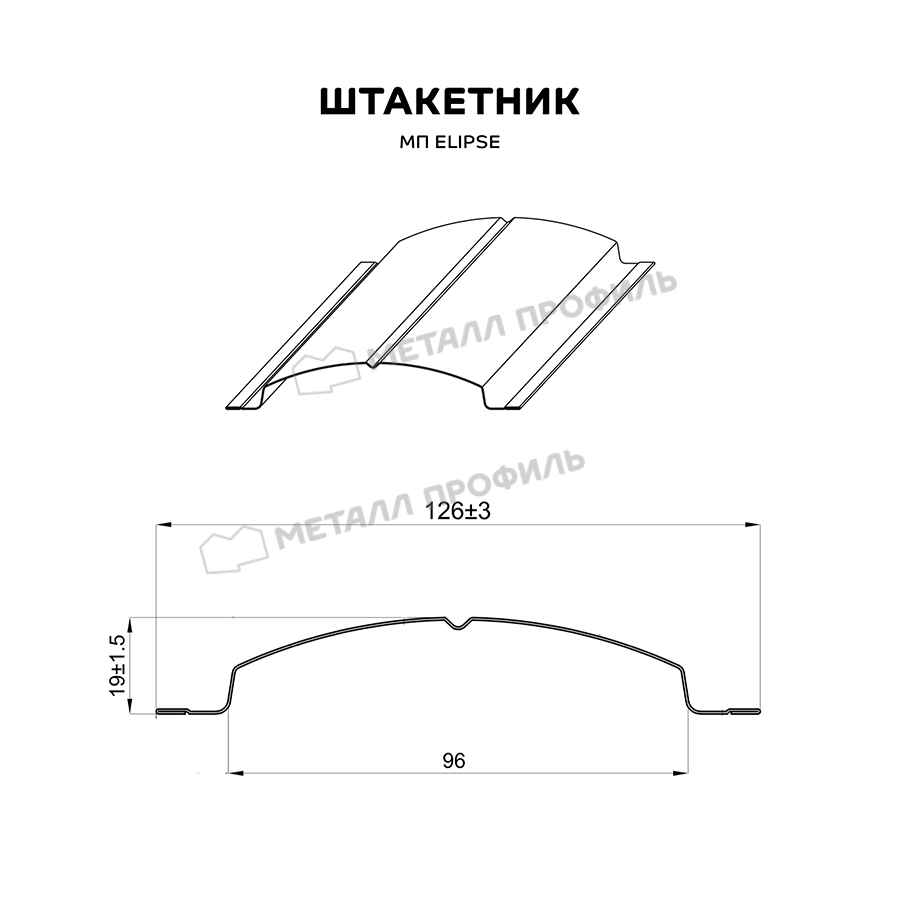 Штакетник Металл Профиль ELLIPSE-T 0,5 VALORI DarkGrey