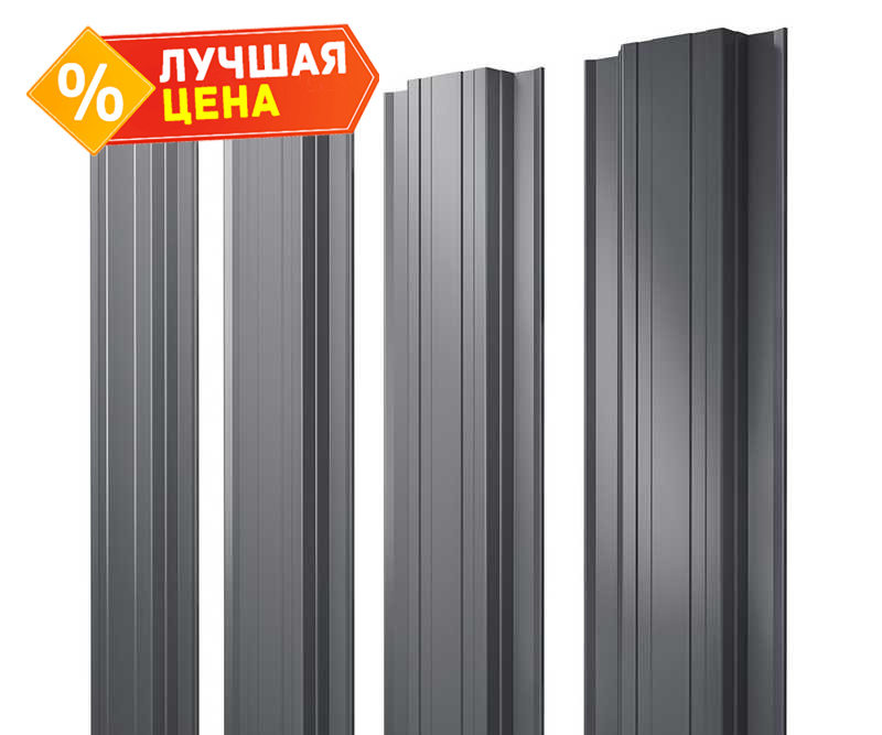 Штакетник Прямоугольный Grand Line 0,5 GreenCoat Pural BT, matt RR 23 Темно-Серый, Мокрый Асфальт